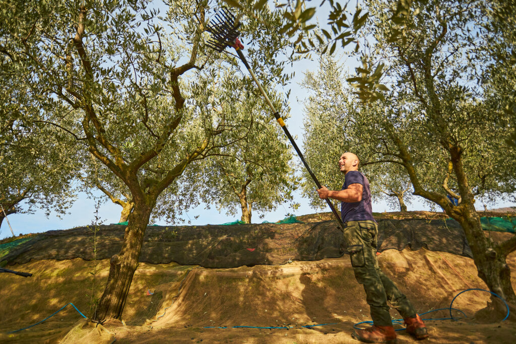 La raccolta viene eseguita manualmente tramite pettinatura o meccanicamente con abbacchiatori. Le olive vengono fatte cadere su reti distese al momento in modo da non mescolarle con quelle cadute naturalmente a terra prima della raccolta.